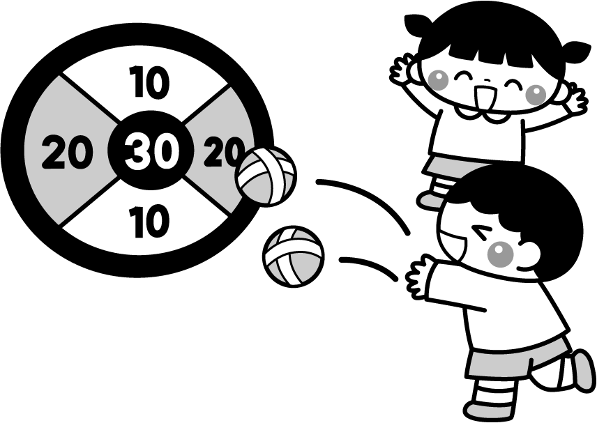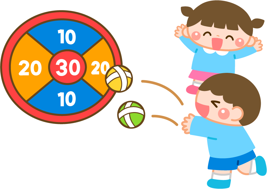 保育園 幼稚園 こども園 園だより えんだより 園児 こども 子ども 子供 男の子 女の子 レクリエーション 遊び 祭り お祭り 夏祭り ダーツ ピンポンダーツ 的 ボール なげる 投げる リクエスト レトロゲーム