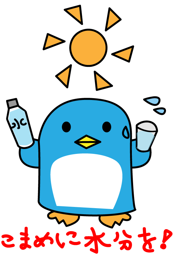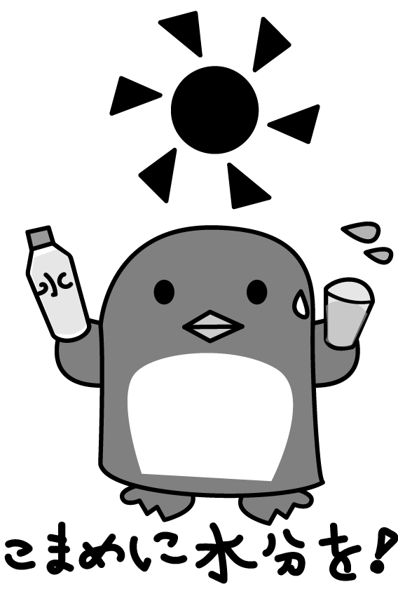 水分補給 熱中症 暑いとき 暑さ対策 えんだより お便り 手紙 園だより 保健だより ほけん 水 ペンギン こまめに水分を!
