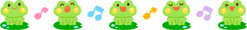 保育園 幼稚園 こども園 園だより えんだより 梅雨 かえる カエル 合唱 カエルの合唱 かえるの合唱 歌う うた 歌 音符 かえるのうた かえるのがっしょう