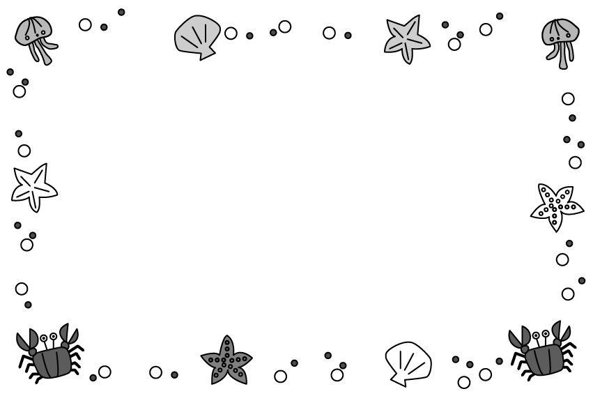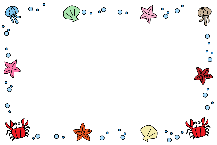 海 夏フレーム ホタテ クラゲ ヒトデ 海の生き物 えんだより お便り 手紙 園だより カニ