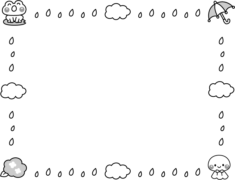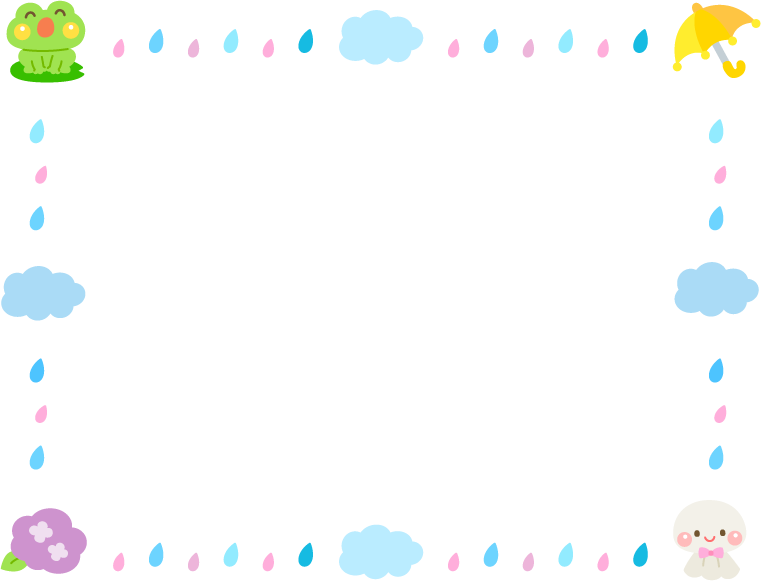 保育園 幼稚園 こども園 園だより えんだより 梅雨 かえる カエル あめ 雨 くも 雲 かさ カサ 傘 しずく 雫 夏フレーム あじさい アジサイ 紫陽花 花 てるてる坊主 テルテル坊主