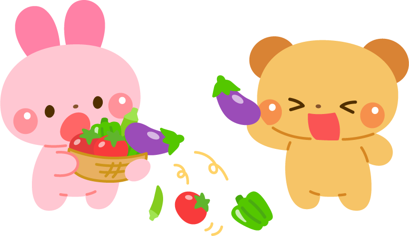 保育園 幼稚園 こども園 園だより えんだより タイトル 給食 食育 野菜 なすび ナスビ 茄子 なす ナス トマト おくら オクラ ピーマン 旬の野菜 旬 夏野菜 動物 うさぎ ウサギ 兎 くま クマ 熊