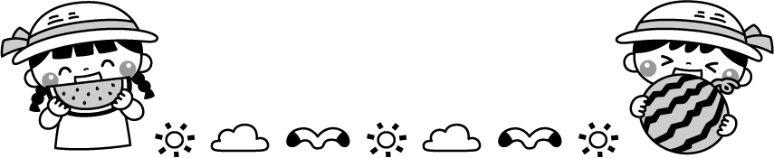 保育園 幼稚園 こども園 園だより えんだより タイトル 7月 7月 8月 8月 しょくいくだより 食育だより きゅうしょくだより 給食だより 給食 食育 園児 こども 子ども 子供 男の子 女の子 食べ物 くだもの 果物 フルーツ 旬 旬の食材 旬の果物 リクエスト すいか スイカ 麦わら帽子 帽子 動物 鳥 トリ とり 鴎 カモメ かもめ くも 雲 太陽
