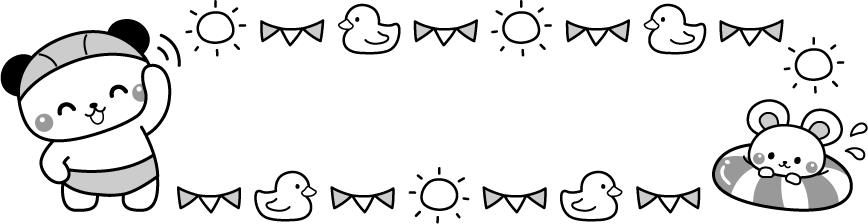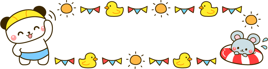 保育園 幼稚園 こども園 園だより えんだより タイトル 8月 8月 プール うきわ 浮き輪 浮輪 水着 太陽 あひる アヒル とり トリ 鳥 動物 ぱんだ パンダ ねずみ ネズミ 鼠 水泳 旗 フラッグ 夏フレーム