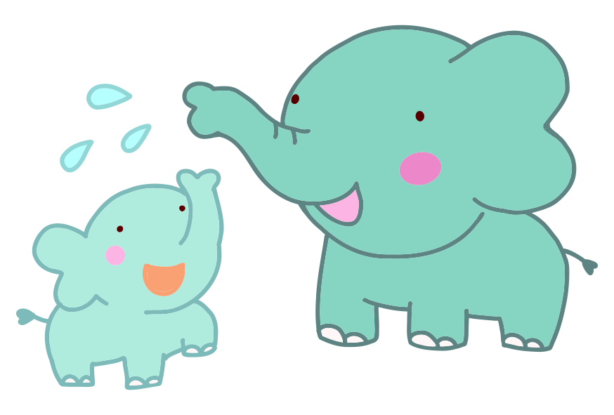 ゾウ 象 みずあそび みず 仲良し なかよし