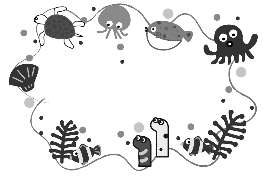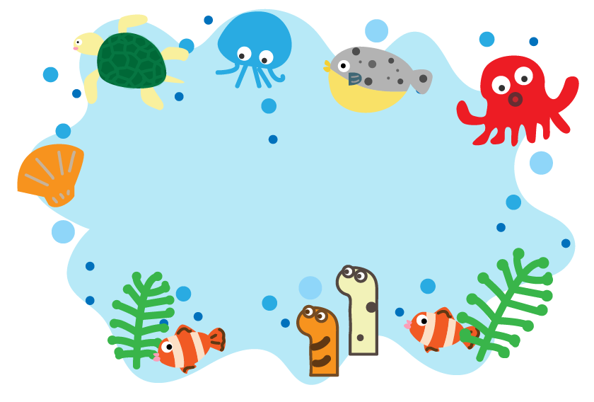 海 魚 ウミガメ ニモ クマノミ タコ ホタテ フグ チンアナゴ うみの日 海藻 クラゲ 園だより お便り 手紙