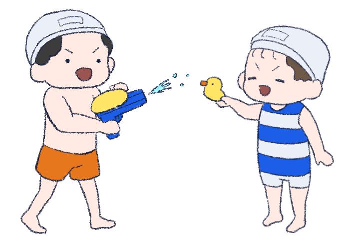 園だより 幼稚園 保育園 こども園 水鉄砲 水でっぽう みずあそび プール 水泳 海 海水浴 水着
