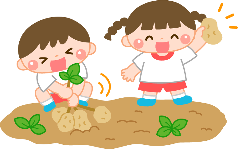 保育園 幼稚園 こども園 園だより えんだより 食育 園児 こども 子ども 子供 男の子 女の子 じゃがいもほり じゃがいも掘り ジャガイモ掘り じゃがいも ジャガイモ 野菜 作物 体操服 リクエスト