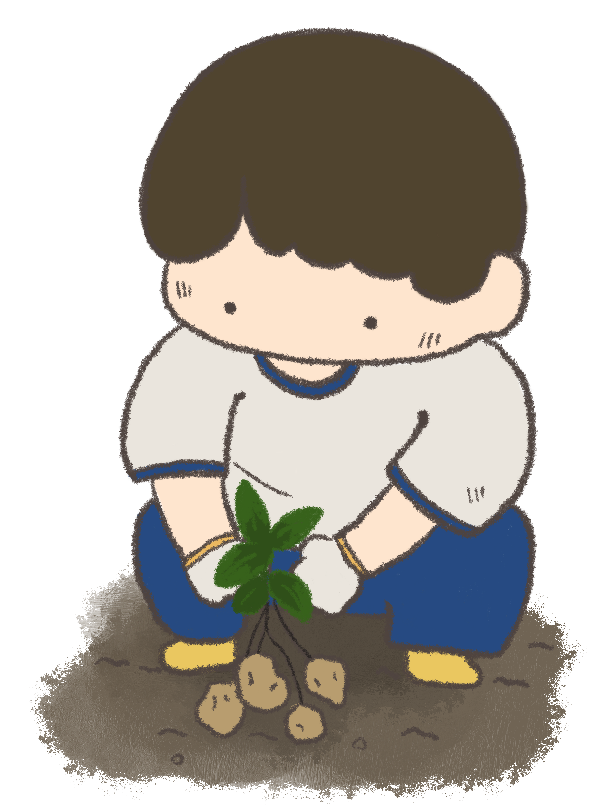 保育園 幼稚園 こども園 園だより えんだより 食育 園児 こども 子ども 子供 男の子 女の子 じゃがいもほり じゃがいも掘り ジャガイモ掘り じゃがいも ジャガイモ 野菜 作物 体操服 リクエスト