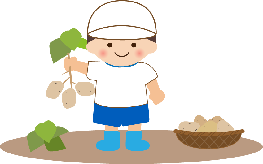 保育園 幼稚園 こども園 園だより えんだより 食育 園児 こども 子ども 子供 男の子 女の子 じゃがいもほり じゃがいも掘り ジャガイモ掘り じゃがいも ジャガイモ 野菜 作物 体操服 リクエスト