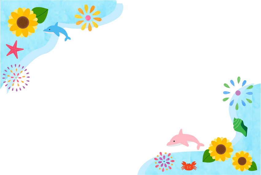 園だより ひまわり ヒマワリ 向日葵 はなび 花火 イルカ いるか 貝殻 かいがら ヒトデ ひとで 暑中お見舞い 暑中見舞い