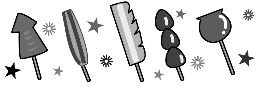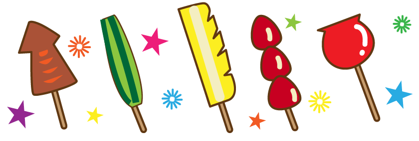 りんごあめ きゅうりの浅漬け 冷え冷えキュウリ イチゴ飴 イカ焼き パイン パイナップル カットフルーツ フルーツ 屋台フード 屋台スイーツ お祭り お便り お楽しみ会 夜店 花火 星