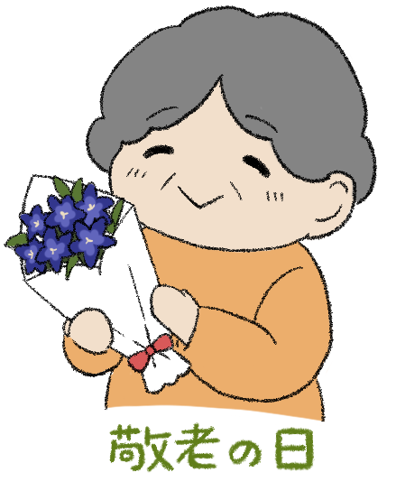 園だより お知らせ 行事 国民の祝日 祝日 老人の日 老人 敬老 けいろう お年寄り おばあさん おばあちゃん 花束 プレゼント リクエスト