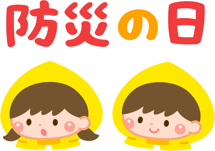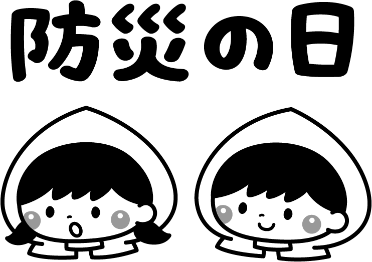 保育園 幼稚園 こども園 園だより えんだより 園児 こども 子ども 子供 男の子 女の子 防災の日 防災 避難訓練 避難 防災週間 地震 災害 防災訓練 頭巾
