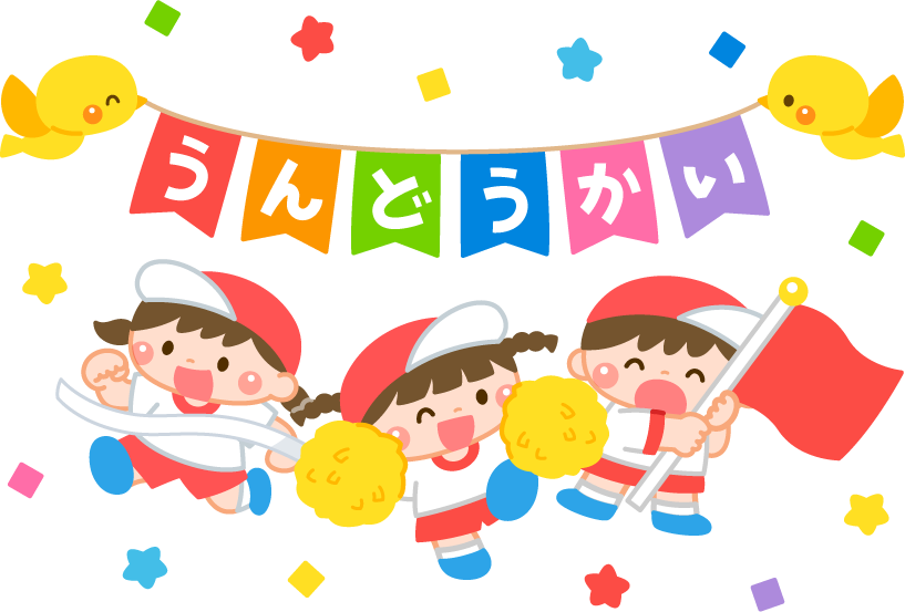 保育園 幼稚園 こども園 園だより えんだより うんどうかい 運動会 ガーランド 旗 星 しおり プログラム パンフレット タイトル 表紙 園児 こども 子ども 子供 男の子 女の子 体操服 秋のイベント