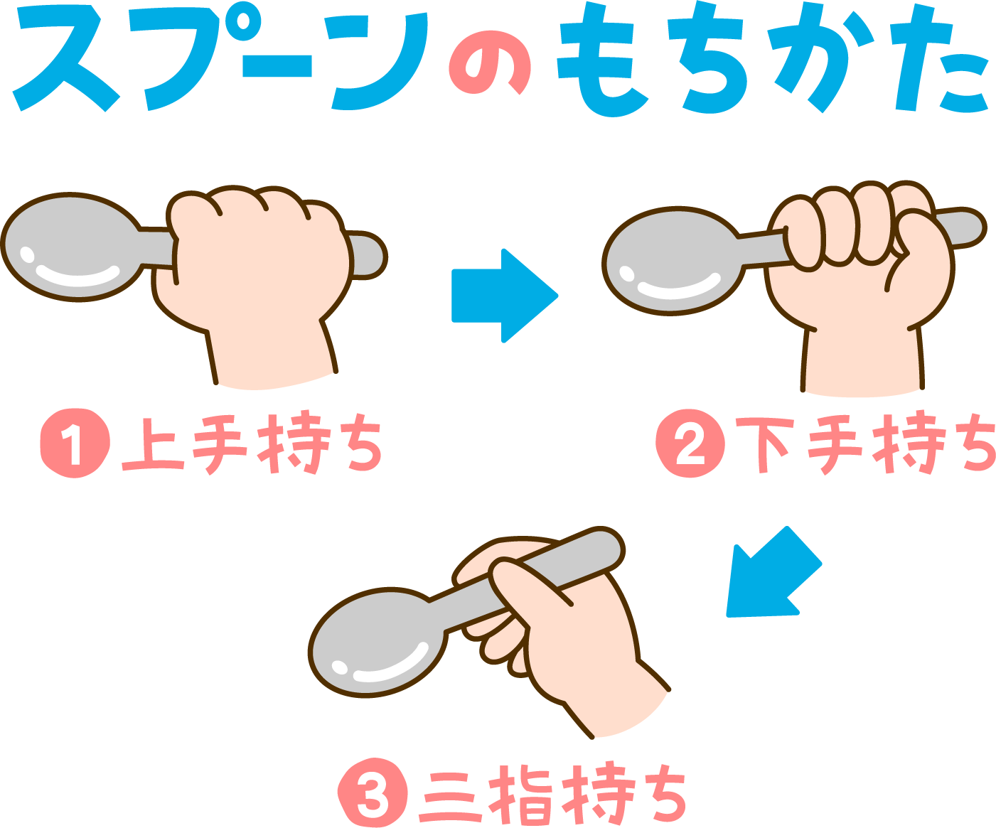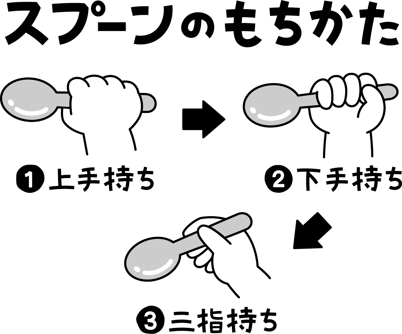 保育園 幼稚園 こども園 園だより えんだより ごはん ご飯 食育 給食 食事 マナー スプーンの持ち方 スプーン 正しい持ち方 貼り紙 ポスター リクエスト 上手持ち 下手持ち 三指持ち スプーンのもちかた 持ち方