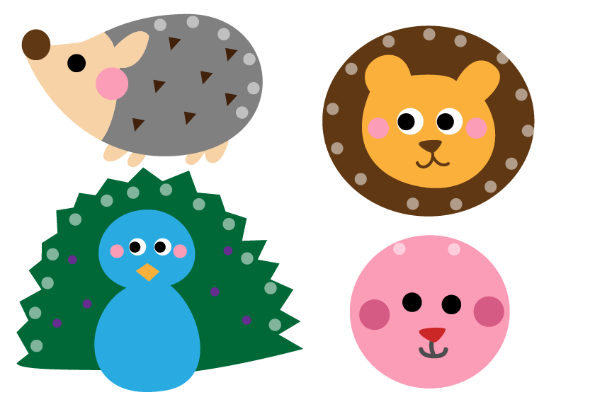 洗濯ばさみ遊び 台紙 うさぎ ライオン ハリネズミ クジャク リクエスト