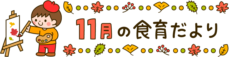 しょくいくだより 食育だより 給食 食育 保育園 幼稚園 こども園 園だより えんだより 11月 11月 タイトル 枯れ葉 イチョウ 紅葉 落ち葉 キャンバス イーゼル 絵画 芸術の秋