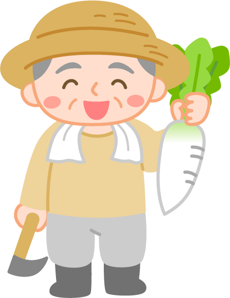 保育園 幼稚園 こども園 園だより えんだより 勤労感謝の日 農家 畑 おじいさん やさい 野菜 大根 収穫