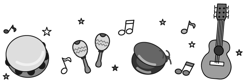 楽器 音楽 演奏 えんだより お便り 手紙 音符 星 リクエスト タンバリン カスタネット ギター マラカス