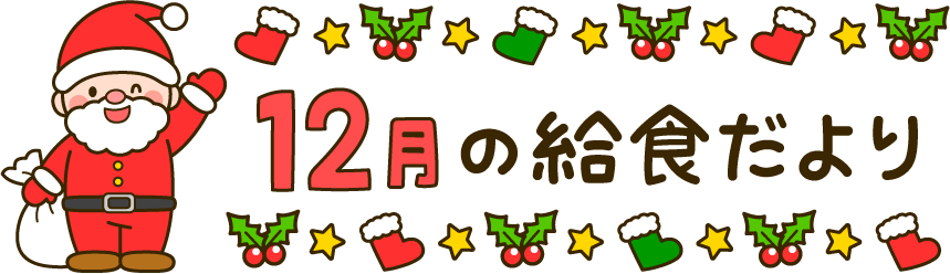 きゅうしょくだより 給食だより 給食 食育 保育園 幼稚園 こども園 園だより えんだより 12月 12月 タイトル クリスマス サンタ サンタクロース サンタブーツ ヒイラギ 星