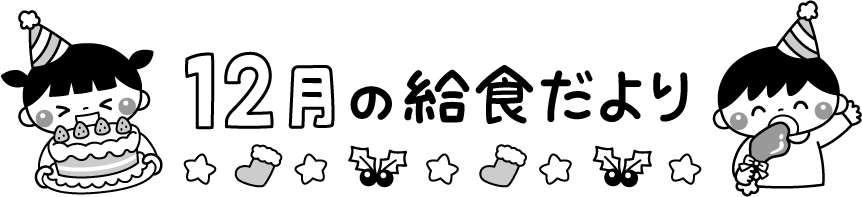 七面鳥 チキン クリスマスチキン クリスマスケーキ ケーキ 園児 こども 子ども 子供 男の子 女の子 きゅうしょくだより 給食だより 給食 食育 保育園 幼稚園 こども園 園だより えんだより 12月 12月 タイトル クリスマス サンタブーツ ヒイラギ 星 帽子