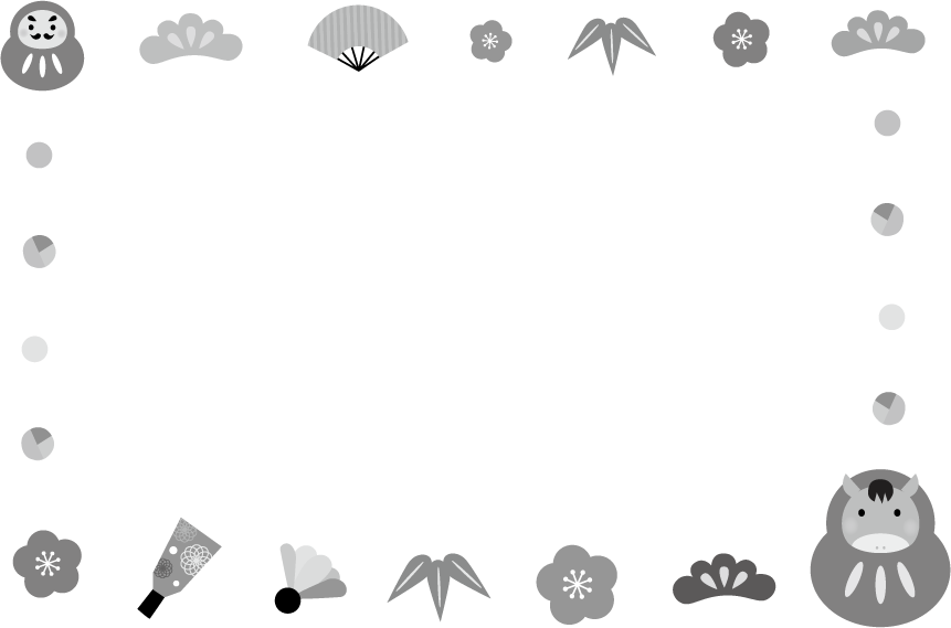 園だより 幼稚園 保育園 こども園 お正月 正月 ダルマ だるま 達磨 馬 ウマ うま 午 午年 松竹梅 羽子板 扇子 2026