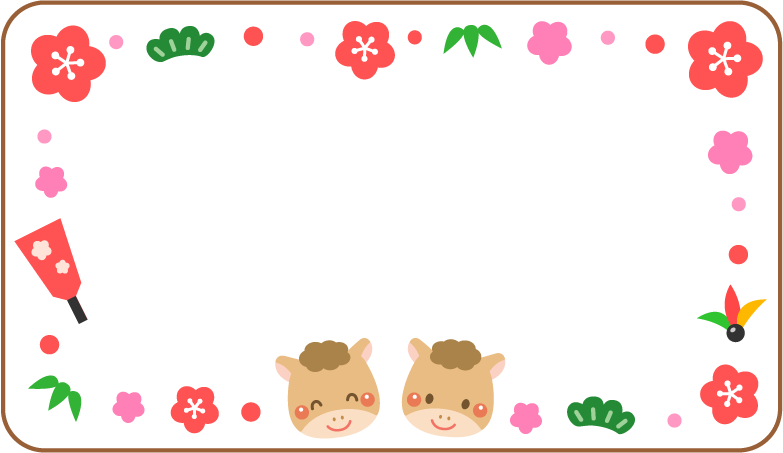 笹 冬フレーム 保育園 幼稚園 こども園 園だより お正月 正月 2026 2026 干支 うま ウマ 馬 午 動物 年賀 年賀状 花 梅 松