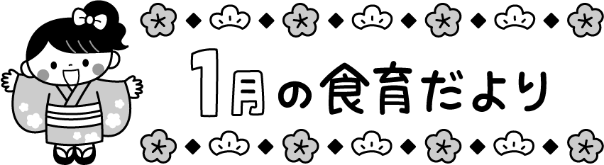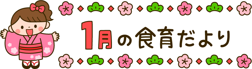 しょくいくだより 食育だより 給食 食育 保育園 幼稚園 こども園 園だより えんだより 1月 1月 タイトル お正月 着物 女の子 こども 子供 子ども 梅の花 花 梅 松