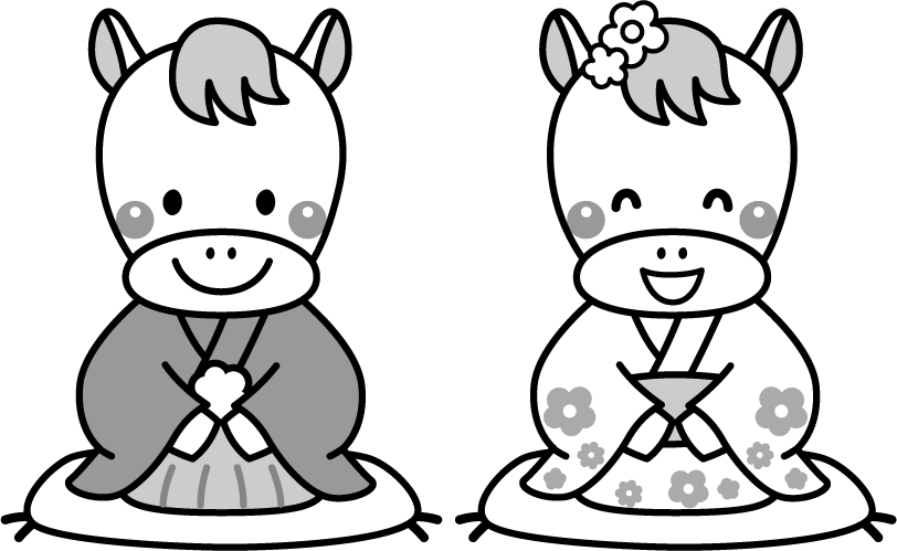 保育園 幼稚園 こども園 園だより お正月 正月 2026 2026 干支 うま ウマ 馬 午 動物 年賀 年賀状 正座 着物