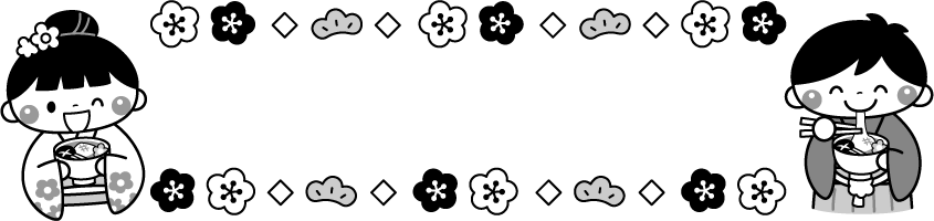 松 梅の花 梅 花 袴 着物 食べ物 御雑煮 お雑煮 お正月 正月 園児 こども 子ども 子供 男の子 女の子 保育園 幼稚園 こども園 園だより えんだより タイトル 1月 1月 きゅうしょくだより 給食だより 食育 給食しょくいくだより 食育だより 冬フレーム