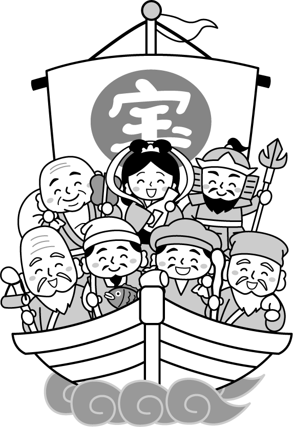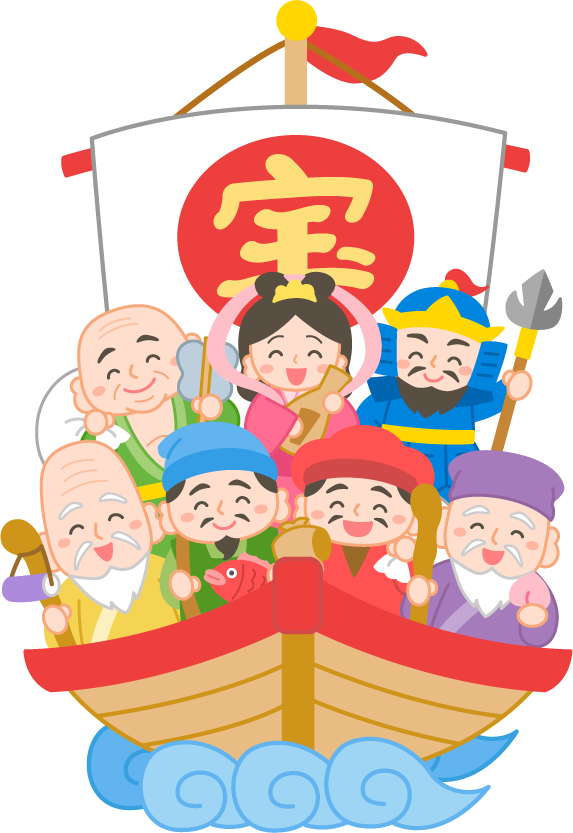 保育園 幼稚園 こども園 園だより えんだより リクエスト 宝船 七福神 船 恵比寿 大黒天 毘沙門天 弁財天 布袋尊 福禄寿 寿老人 えびす えびすさん だいこくてん びしゃもんてん べんざいてん ほていそん ふくろくじゅ じゅろうじん 神 神様 仏教 七柱 縁起物 七難即滅 七福即生 お正月 正月 2026 2026 年賀 年賀状