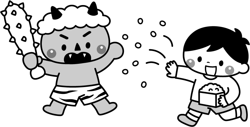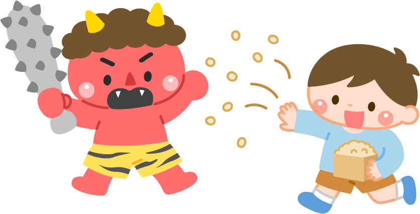 赤鬼 鬼 オニ おに 保育園 幼稚園 こども園 園だより えんだより リクエスト 節分 豆まき まめまき 豆撒き うた 歌 まめ 豆 マメ 桝 園児 こども 子ども 子供 男の子 鬼は外 歌イラスト