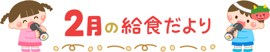 お面 鬼 豆まき 節分 2月 2月 タイトル えんだより 園だより こども園 幼稚園 保育園 恵方巻 恵方巻き 給食 食育 料理 食べ物 お寿司 寿司 巻き寿司 園児 こども 子ども 子供 男の子 女の子 きゅうしょくだより 給食だより
