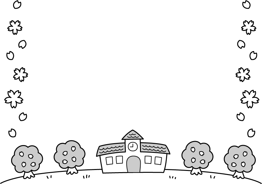 春フレーム 保育園 幼稚園 こども園 園だより えんだより 卒園 卒園式 入園 入園式 新学期 新年度 園舎 桜 さくら サクラ 花 花びら 桜の木 さくらの木 サクラの木 木