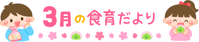 保育園 幼稚園 こども園 園だより えんだより タイトル 3月 3月 しょくいくだより 食育だより 食育 給食 ひな祭り ひなまつり ひなあられ あられ 食べ物 おかし お菓子 園児 こども 子ども 子供 男の子 女の子 さくら サクラ 桜 桜もち 桜餅 もち 餅 おもち お餅