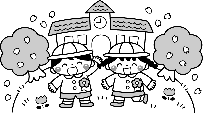 保育園 幼稚園 こども園 園だより えんだより 園児 こども 子ども 子供 男の子 女の子 桜 さくら サクラ 花 花びら 入園 入園式 制服 園舎 桜の木 さくらの木 サクラの木 木 チューリップ