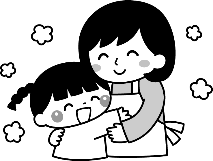 保育園 幼稚園 こども園 園だより えんだより 園児 こども 子ども 子供 女の子 母の日 お母さん 母親 母 親子 ハグ 抱きしめる 花 なかよし 仲良し 娘