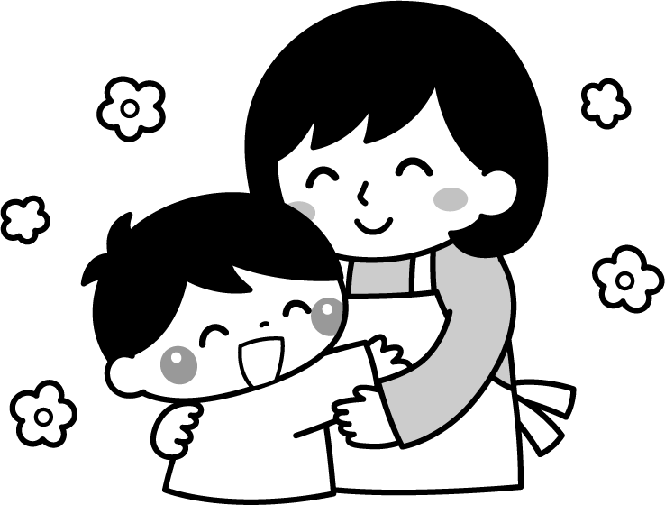 保育園 幼稚園 こども園 園だより えんだより 園児 こども 子ども 子供 男の子 息子 母の日 お母さん 母親 母 親子 ハグ 抱きしめる 花 なかよし 仲良し