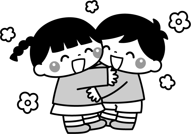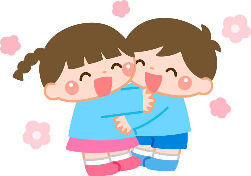 保育園 幼稚園 こども園 園だより えんだより 園児 こども 子ども 子供 男の子 女の子 なかよし 仲良し ハグ 抱きしめる 抱きつく