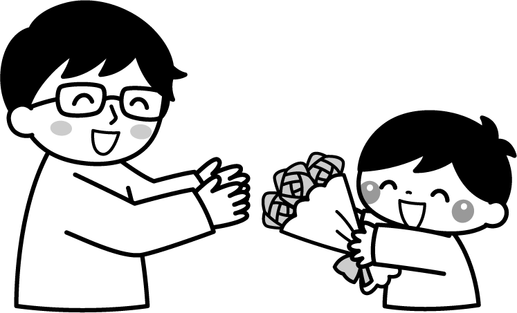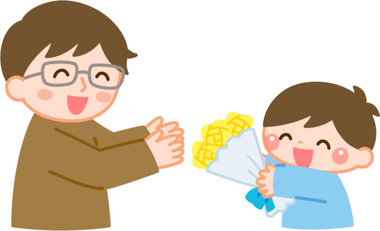 保育園 幼稚園 こども園 園だより えんだより 父の日 おとうさん お父さん こども 子ども 子供 園児 息子 男の子 花 花束 バラ 薔薇 黄色いバラ 黄色い薔薇