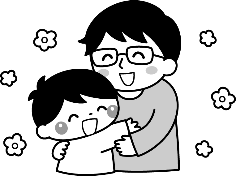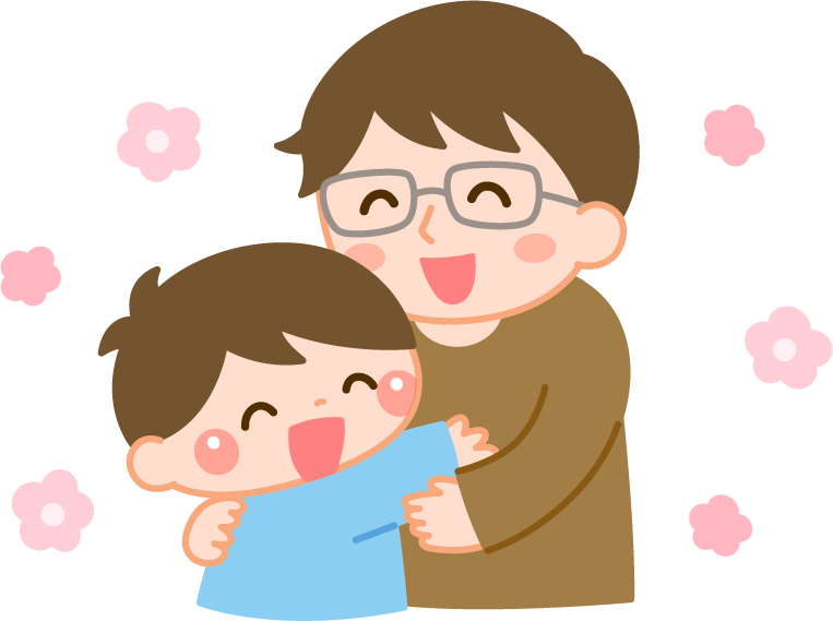 保育園 幼稚園 こども園 園だより えんだより 園児 こども 子ども 子供 男の子 息子 父の日 お父さん 父親 父 親子 ハグ 抱きしめる 花 なかよし 仲良し