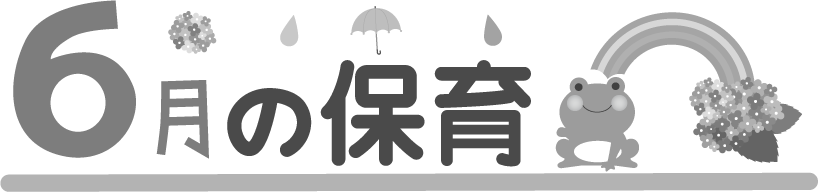 幼稚園 保育園 こども園 園だより 予定 お知らせ 6月 6月 6月の保育 保育 かえる カエル 蛙 虹 にじ 紫陽花 あじさい アジサイ カサ 傘 リクエスト