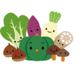 ベジタブル 食べる 給食 食べ物 食育 食育だより 南瓜 カボチャ かぼちゃ キノコ きのこ しいたけ シイタケ くり 栗 れんこん レンコン だいこん 大根 サツマイモ さつまいも チンゲンサイ 青梗菜 やさい 秋の野菜